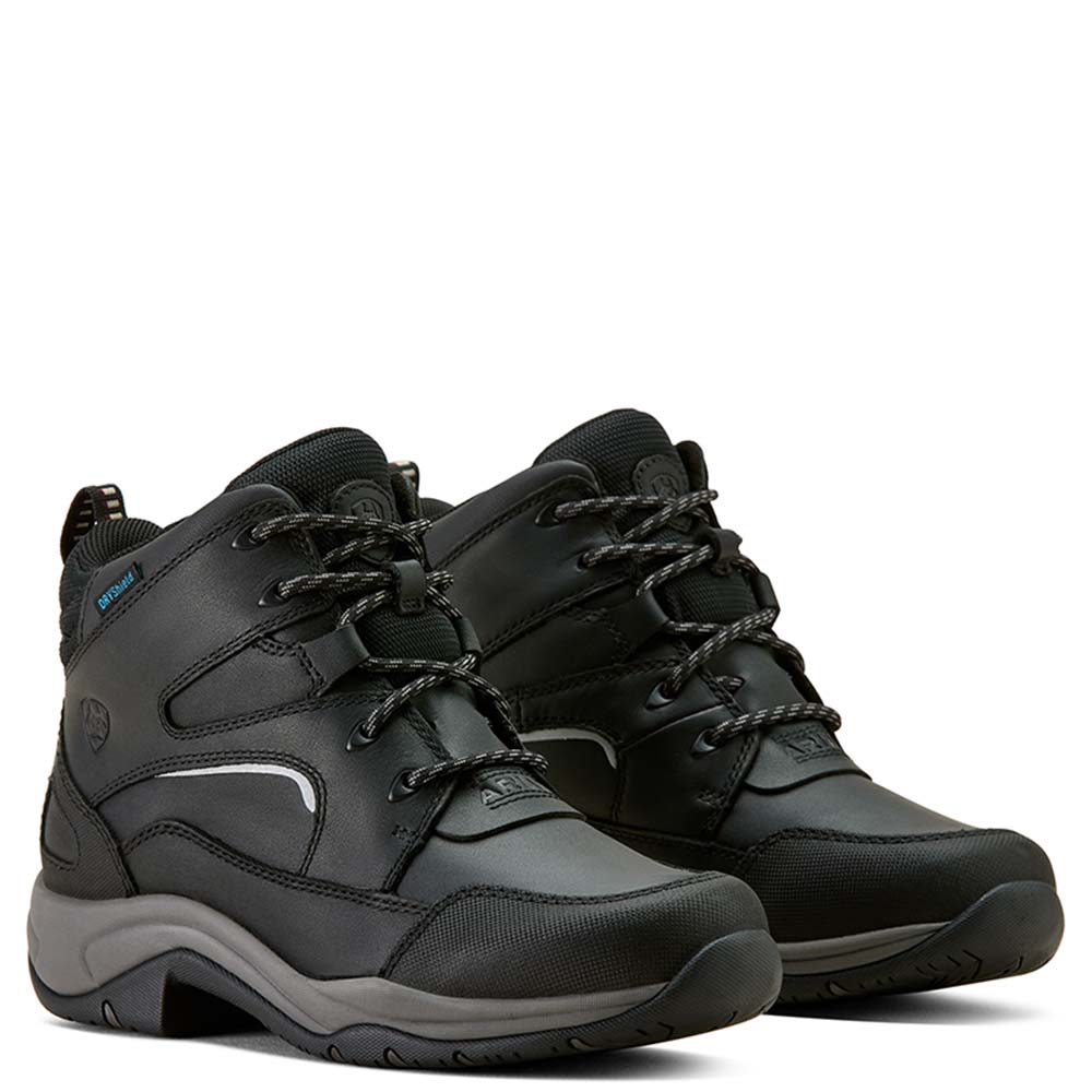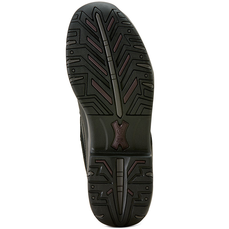 Czarne buty mają cholewkę o wysokości 4 cale oraz zaokrąglony nosek, co zapewnia wygodę i swobodę ruchu niezależnie od tego, czy chodzisz, stoisz czy jeździsz konno. Technologia ATS® zapewnia ergonomiczne wsparcie, szczególnie na nierównym terenie – idealne podczas długich dni spędzonych w siodle lub w stajni.
