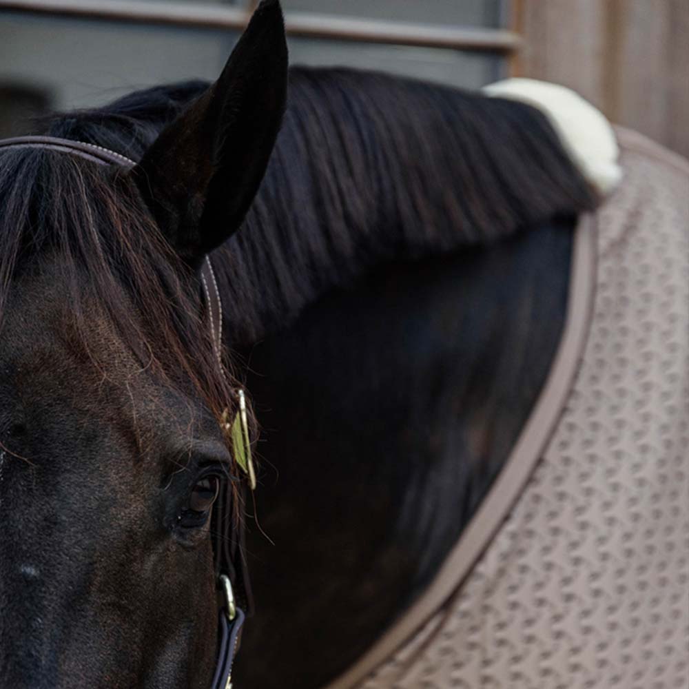 - Skutecznie odprowadza wilgoć i ciepło z ciała konia