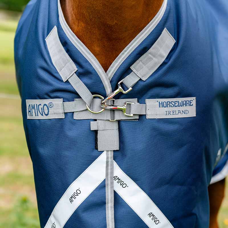 Derka padokowa Amigo 1200D 100g od Horseware wykonana jest z mocnego poliestru 1200D, co czyni ją wodoodporną i oddychającą. Posiada zapięcie w kształcie litery V, które zmniejsza nacisk na ramiona konia, zwiększając komfort podczas wypasu. Kompatybilna z systemem podkładów Horseware® i odpinanymi kapturami Amigo®, oferuje elastyczność i opcje. Derka posiada podwójne łuki na nogi, aby zachować swobodę ruchu, jednocześnie pozostając bezpiecznie pod brzuchem.