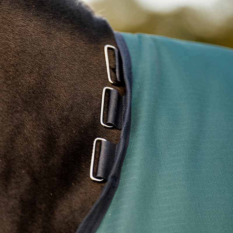 Derka posiada dwie pasy krzyżowe, uchwyty na paski na nogi oraz pasek ogonowy, który utrzymuje ją na miejscu – nawet przy intensywnym ruchu. Ma również mocowania na kaptur i jest kompatybilna z praktycznym systemem linerów Horseware. Kaptur, liner i paski na nogi sprzedawane są osobno.