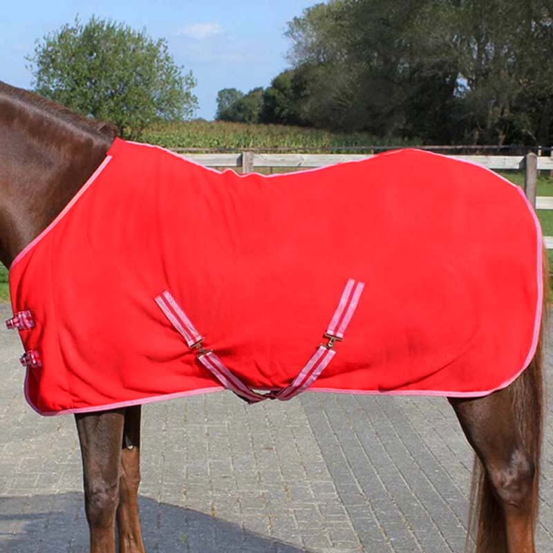 Czerwona derka polarowa QHP to praktyczny i przystępny cenowo model, który sprawdzi się w wielu sytuacjach – jako derka osuszająca po treningu, derka transportowa lub lekka ochrona przed wychłodzeniem podczas prowadzenia konia między stajnią a halą.