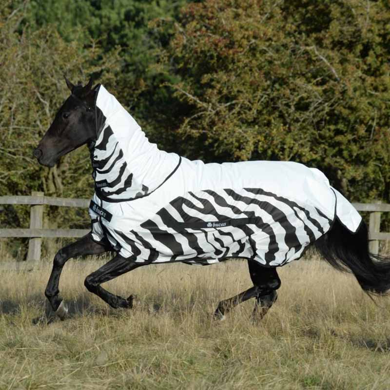 Srebrna powierzchnia w górnej części derki odbija promienie słoneczne, pomagając utrzymać niższą temperaturę pod derką. Charakterystyczny wzór zebry działa odstraszająco na owady – badania wykazały, że paski dezorientują muchy i znacząco ograniczają ich lądowanie na koniu.