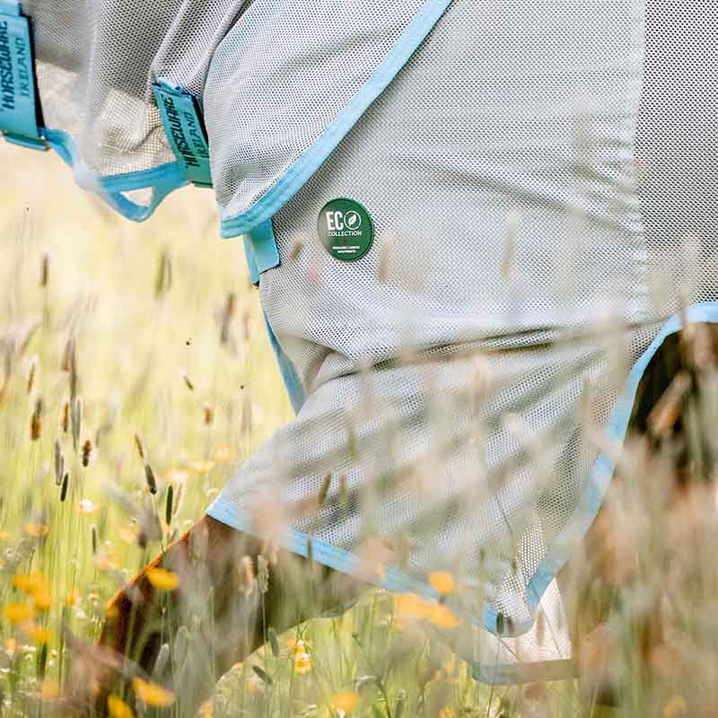 AmEco to derka przeciw owadom wykonana z materiałów pochodzących z recyklingu, która łączy skuteczną ochronę z bardziej zrównoważonym podejściem do produkcji. Dba nie tylko o komfort konia, ale także o środowisko.