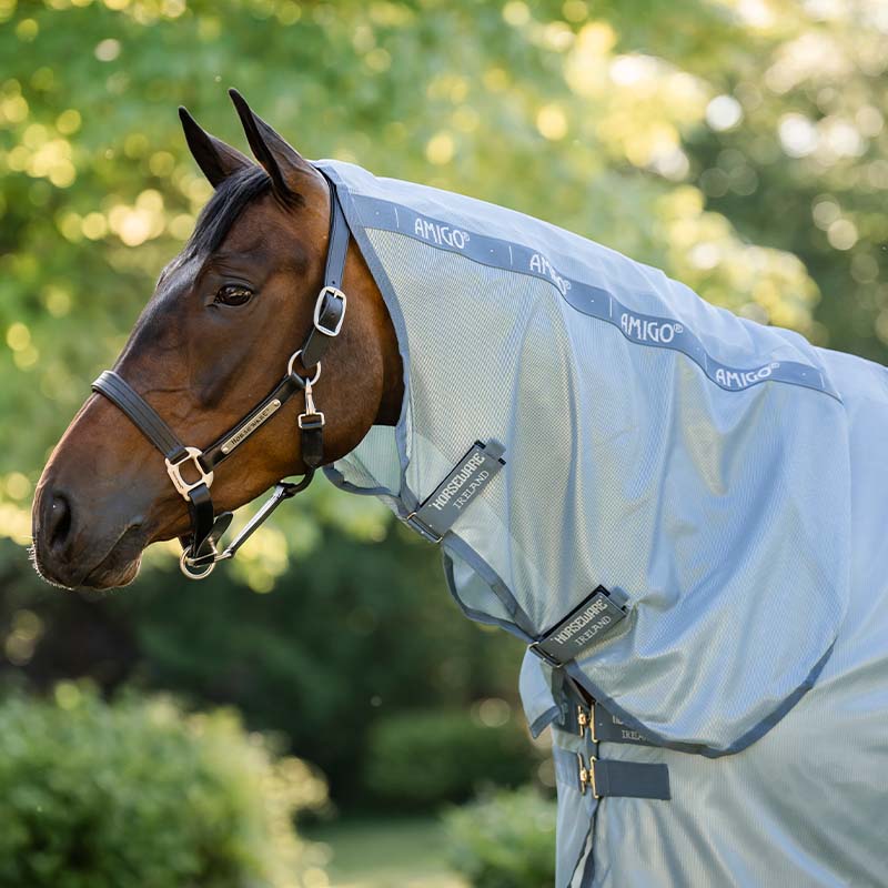 Horseware Amigo Integrated to przystępna cenowo i wytrzymała derka przeciw owadom ze stałym kapturem, zapewniająca pełną ochronę przed muchami oraz promieniowaniem UV.