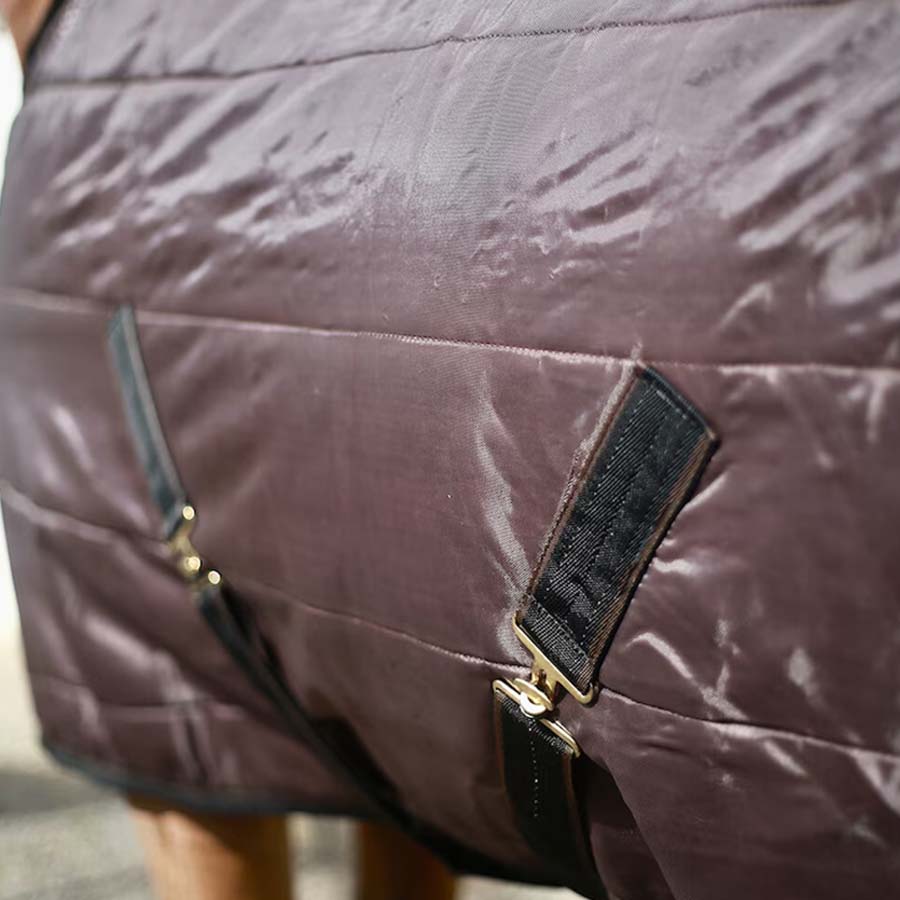 Ta derka stajenna od Hansbo Sport wykonana jest z materiału 420 denier, co zapewnia dobry balans między trwałością a komfortem. Z wypełnieniem 100 g, jest idealna, aby utrzymać twojego konia w cieple w chłodne dni w stajni. Poziome pikowanie nie tylko dobrze wygląda, ale także pomaga utrzymać wypełnienie na miejscu. Błyszcząca podszewka poliestrowa oferuje miękkie odczucie na skórze twojego konia i zmniejsza ryzyko otarć. Podwójne zapięcie z przodu i krzyżowe paski mocujące zapewniają dobre dopasowanie derki i zapobiegają przesunięciom, dając dodatkowe bezpieczeństwo, gdy twój koń się porusza.