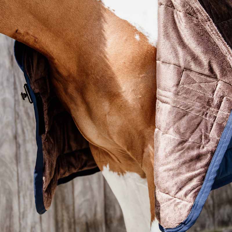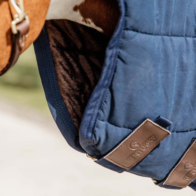 Derka podkładowa z kołnierzem od Kentucky jest przytulna i miękka, co ułatwia dostosowanie jej do potrzeb twojego konia. Posiada sztuczne futro królicze od wewnątrz, które zapobiega otarciom i jest idealna dla koni o wrażliwej skórze lub koni z ostrzyżoną sierścią. Wypełnienie nie wchłania żadnych zapachów, a kołnierz również jest wyłożony sztucznym futrem króliczym. Część kołnierza jest odpinana za pomocą podwójnego zapięcia na rzep, co umożliwia łatwą kombinację z innymi derkami Kentucky. Derka podkładowa nadaje się do prania w pralce, co ułatwia konserwację.