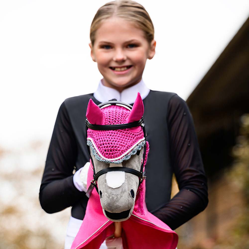 Prześliczne, różowe nauszniki dla koników na patyku marki QHP, wykonane z poliestru i bawełny. Idealne w połączeniu z jednym z ogłowi QHP dla koników!