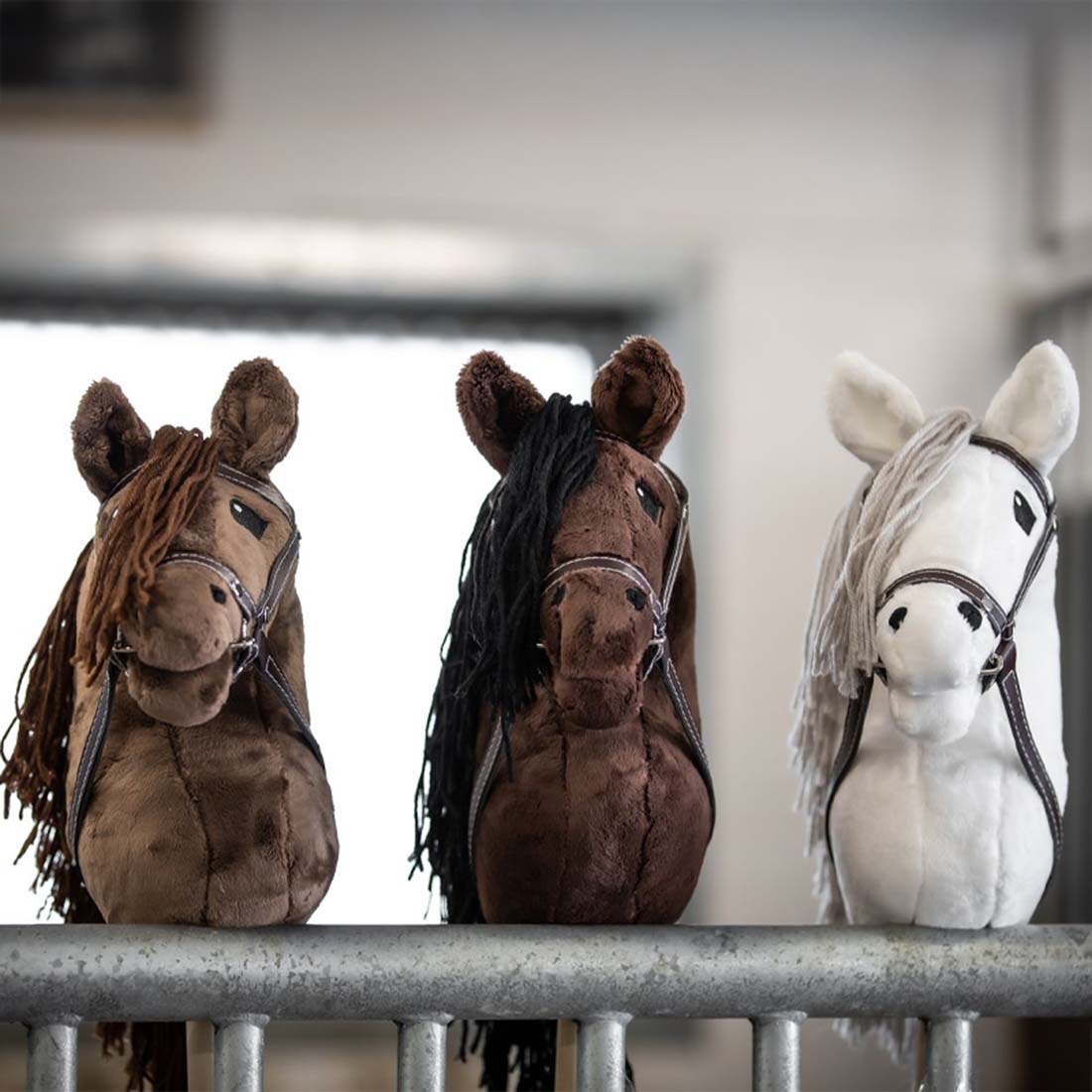 Konik dostarczany jest z brązowym ogłowiem oraz wydrukowanym rodowodem. Całkowita długość wynosi 80 cm, wliczając głowę konia i drewniany kij.