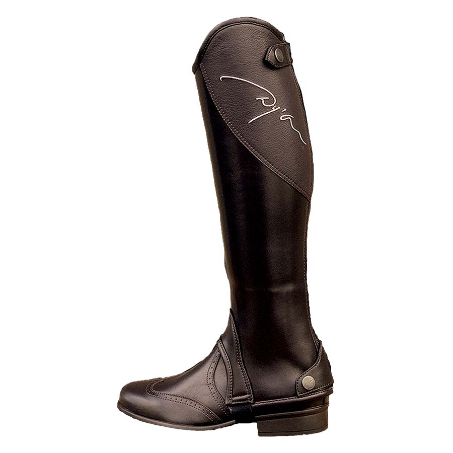 Wyposażone w praktyczny i wytrzymały zamek z tyłu, ułatwiają zakładanie i zdejmowanie. Elastyczny materiał po zewnętrznej stronie oraz wnętrze z połączenia skóry i mikrofibry gwarantują wygodę podczas użytkowania. Całość dopełnia stylowa naszywka z logo Dy’on.