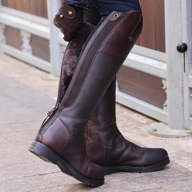 Odkryj oficerki jeździeckie zimowe Moretta Ventura, zaprojektowane, aby Twoje stopy były suche i ciepłe podczas zimnych jazd i pracy w stajni. Te praktyczne oficerki jeździeckie zimowe wykonane są z olejonej, wodoodpornej skóry i mają wodoodporne membrany aż do kostki, zapewniając doskonałą ochronę przed wilgocią. Dzięki elastycznym panelom na łydkach, uzyskujesz wygodne i dopasowane dopasowanie, podczas gdy termiczne futerko sherpa zapewnia luksusowe uczucie i skuteczną izolację przed zimnem. Shock-absorbing ActiveFlex wkładka i podeszwa Moretta AllTerrain zapewniają wysoki komfort i dobrą przyczepność, niezależnie od terenu.