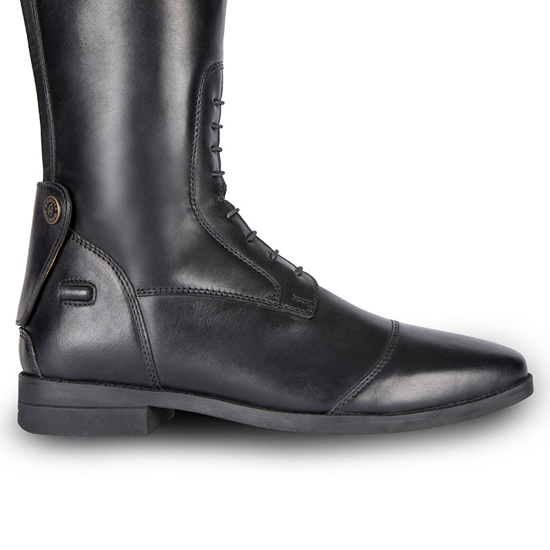 Odkryj elegancję i komfort botków jeździeckich Moretta Ortona, stworzonych z myślą o nowoczesnej jeźdźczyni. Te damskie botki wykonane są z miękkiej, ręcznie szytej skóry z wysokim połyskiem, co zapewnia stylowy i profesjonalny wygląd. Posiadają trwały zamek błyskawiczny YKK® z tyłu oraz skórzane panele UltraFit, oferując elastyczne i komfortowe dopasowanie, które podąża za konturami stopy i nogi. Górna część w kroju ujeżdżeniowym tworzy wydłużony profil, idealny do zawodów. Botki zawierają również skórzane wsporniki na ostrogi oraz amortyzującą podeszwę ActiveFlex, co czyni je idealnymi na długie jazdy. 3D siateczkowa podszewka skutecznie odprowadza wilgoć, utrzymując Twoje stopy suche i komfortowe przez cały czas jazdy.