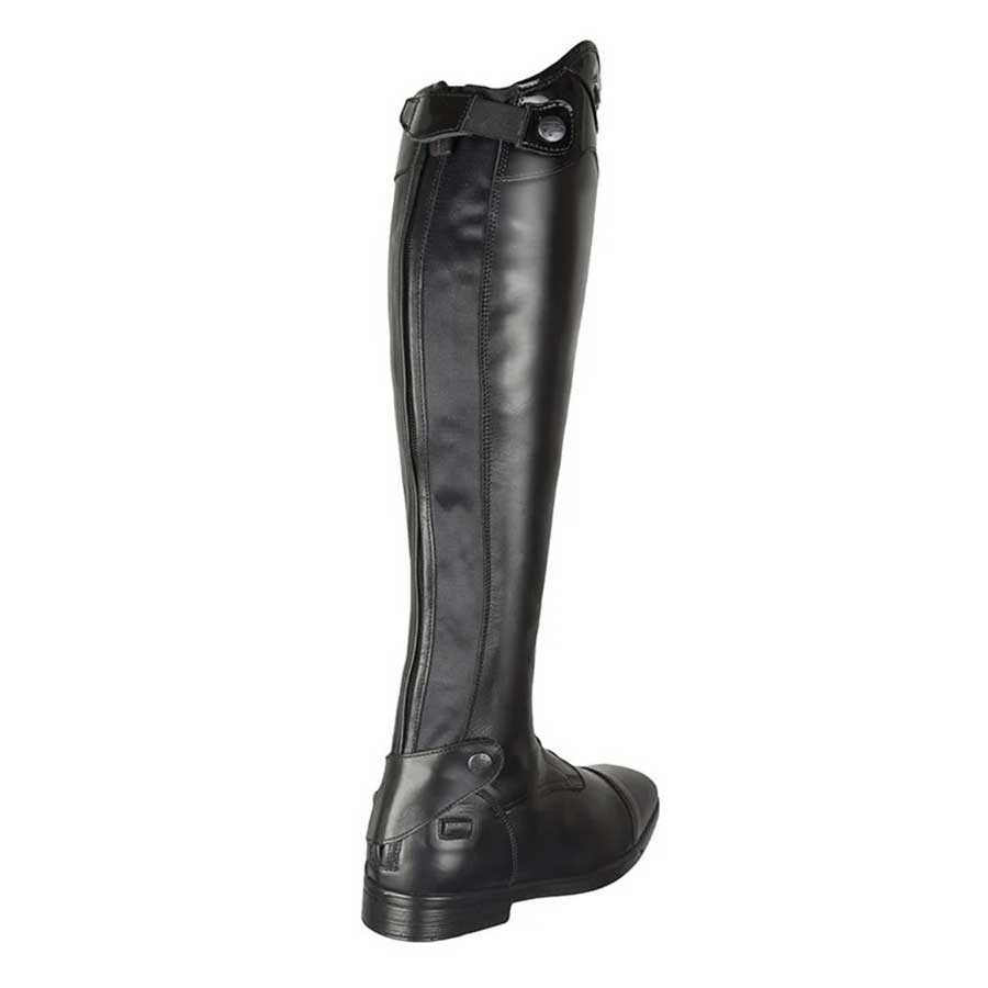Miami Pro Lux to technicznie zaawansowane oficerki jeździeckie, ręcznie wykonane z najwyższej jakości pełnoziarnistej skóry cielęcej. Te eleganckie, czarne oficerki z lakierowanymi detalami są wyposażone w elastyczne sznurowanie oraz elastyczny panel wzdłuż tylnej części cholewki, zapewniający najlepsze możliwe dopasowanie i elastyczność. Wzmocniona wewnętrzna strona, wzmocniony zamek błyskawiczny, ergonomicznie ukształtowana cholewka, półkwadratowy nosek oraz wysokowydajna podeszwa dopełniają te buty, wykonane zgodnie z prawdziwą włoską jakością.