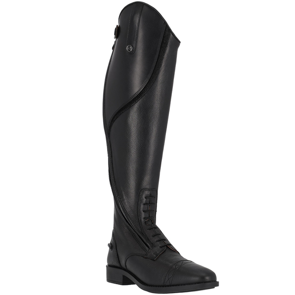Tamar, dla dzieci i juniorów, to para czarnych, eleganckich butów jeździeckich wykonanych z gładkiej i elastycznej skóry wysokiej jakości. Dyskretne dekoracyjne szwy wzdłuż górnej części stopy nadają elegancki wygląd, a projekt jest zaprojektowany tak, aby zapewniać zarówno swobodę ruchów, jak i komfort w siodle.