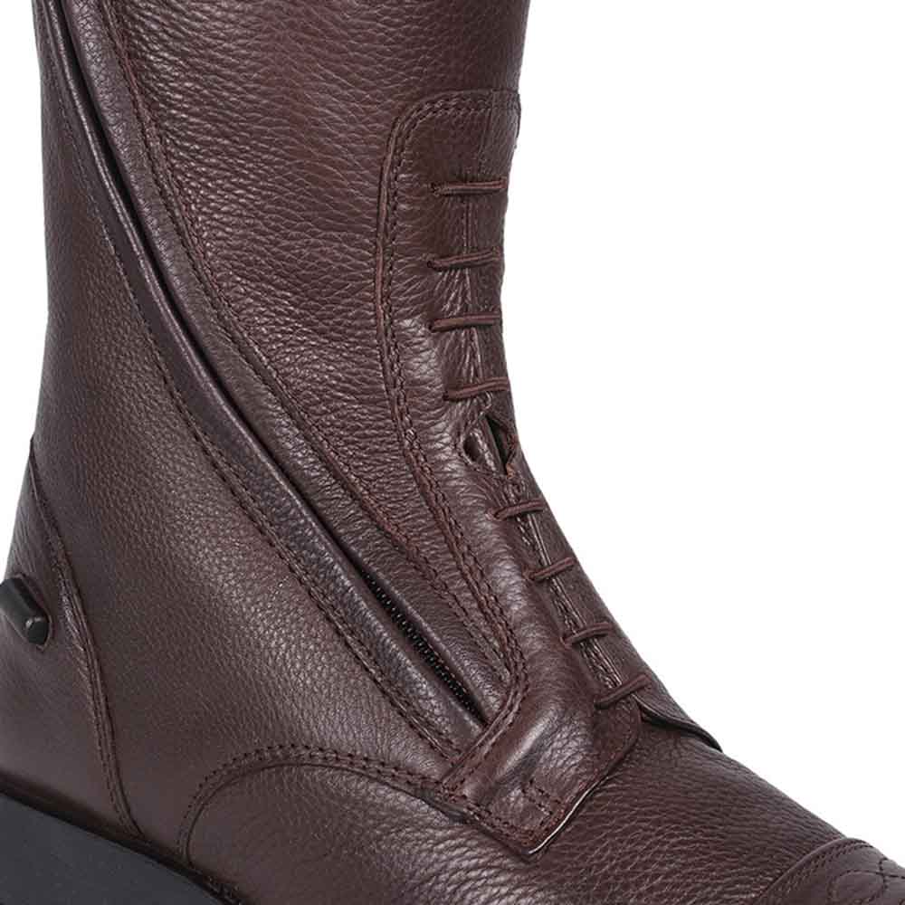 Buty jeździeckie Tamar od QHP są eleganckie i wykonane z elastycznej, wysokiej jakości skóry. Dekoracyjna linia na bucie dodaje stylowego akcentu. Ukośne umiejscowienie zamka zapewnia komfort i trwałość. Dzięki elastycznej skórze, elastycznemu wiązaniu oraz elastycznemu wkładowi z tyłu, te buty są bardzo wygodne w noszeniu.