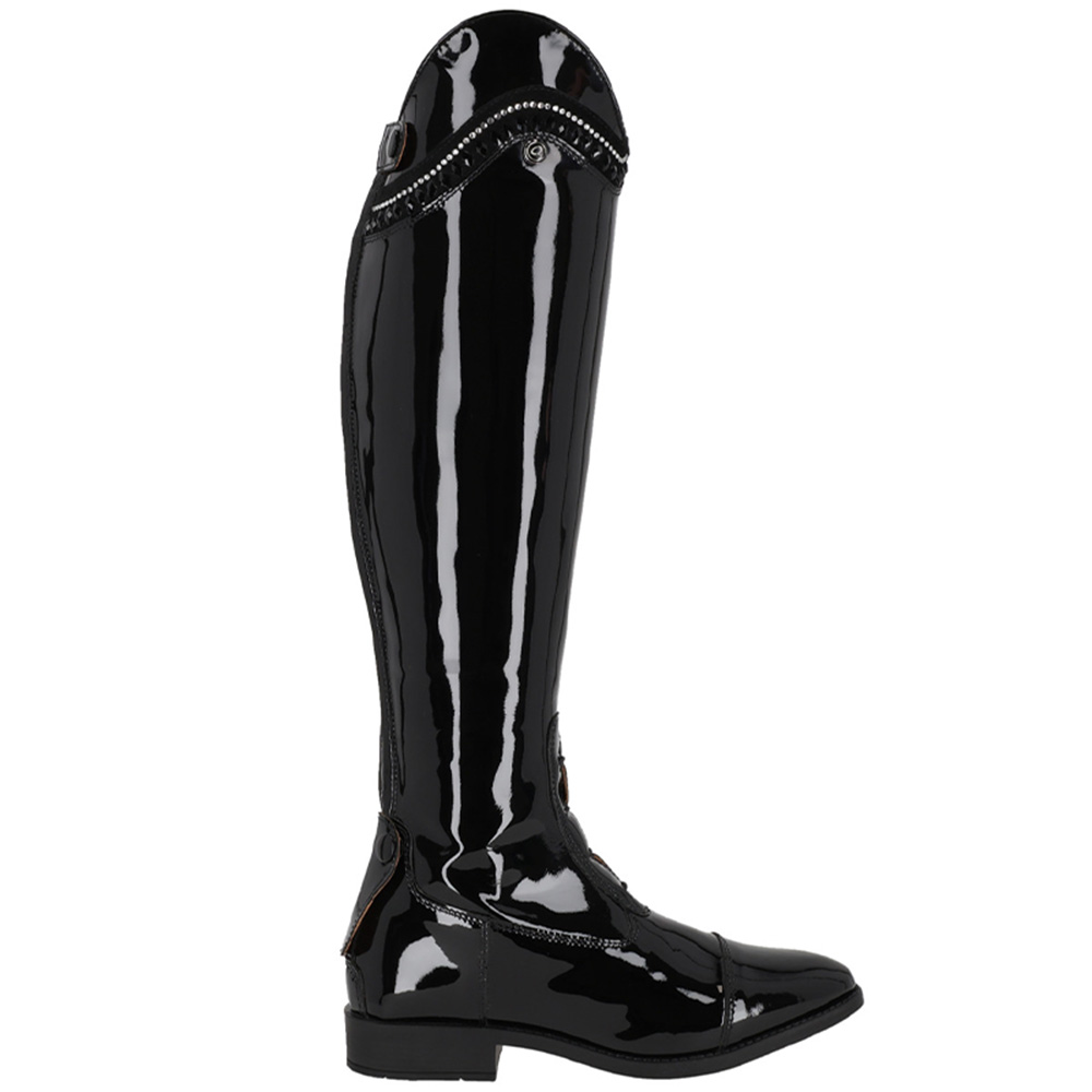 Dekoracyjne sznurowanie z przodu stanowi nie tylko stylowy akcent, ale także zwiększa elastyczność w okolicy kostki. Elastyczny panel z tyłu oraz wewnątrz sprawia, że but dopasowuje się do kształtu nogi, zapewniając wygodne dopasowanie. Buty posiadają wysoko wycięty cholewkę nadającą klasyczny profil ujeżdżeniowy.