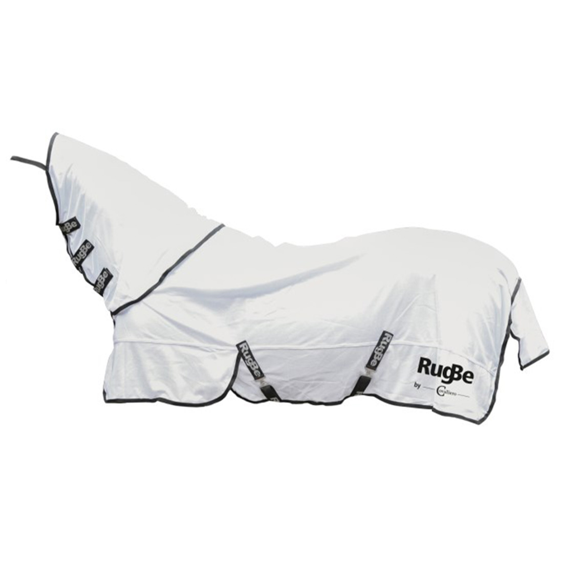 Odpinany kaptur mocowany jest za pomocą praktycznych rzepów. Elastyczne, odpinane paski na nogi oraz elastyczny pasek przy głowie dodatkowo stabilizują derkę i zapobiegają jej przesuwaniu się – nawet podczas tarzania.