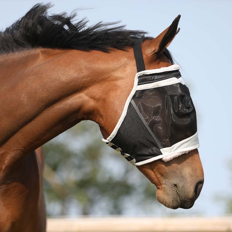 Maska przeciw owadom Shires bez uszu – idealna dla koni z dużą grzywką.