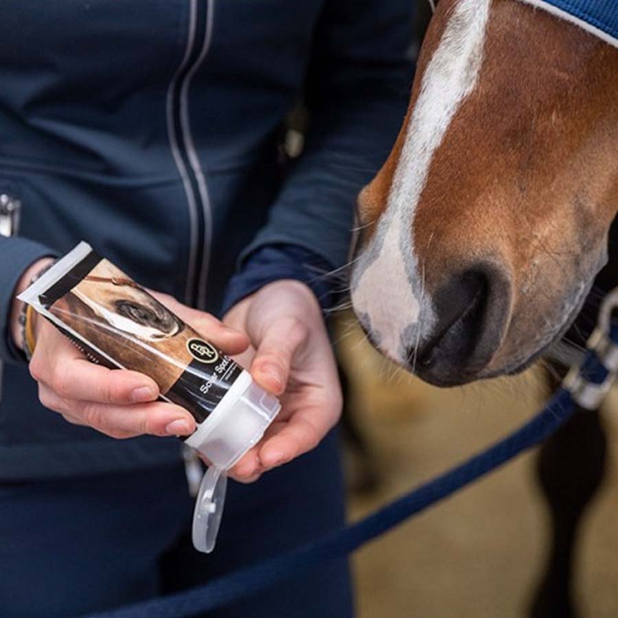 Nowy produkt należy najpierw zastosować na niewielkim obszarze skóry, aby sprawdzić, czy koń nie wykazuje nadwrażliwości na którykolwiek ze składników. Zaleca się wykonanie takiej próby co najmniej 24 godziny przed pełnym zastosowaniem.