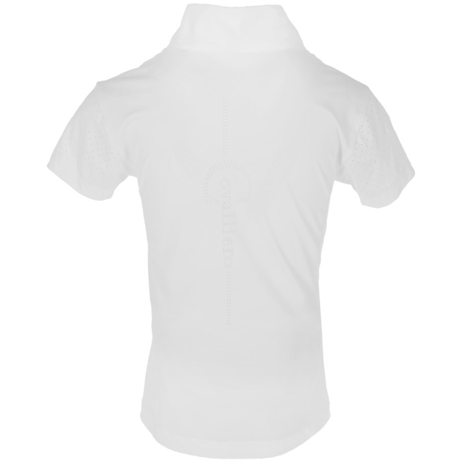 Ta koszulka konkursowa została zaprojektowana z myślą o połączeniu elegancji i funkcjonalności podczas zawodów jeździeckich. Wyposażona w stójkę oraz ukryte zapięcie na guziki, zapewnia schludny i profesjonalny wygląd na parkurze czy czworoboku.