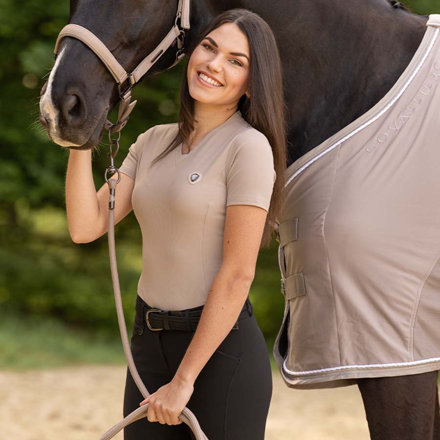 Lekki materiał oraz dopasowany, kobiecy krój podkreślają sylwetkę i zapewniają wygodę zarówno podczas jazdy konnej, jak i innych aktywności.