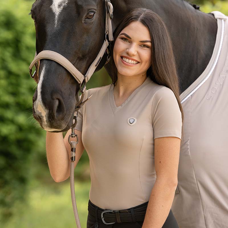Dzięki sportowej dzianinie typu piqué, która jest oddychająca i skutecznie reguluje wilgoć, koszulka łączy funkcjonalność z nowoczesnym stylem – idealnie sprawdzi się w codziennym użytkowaniu w stajni.