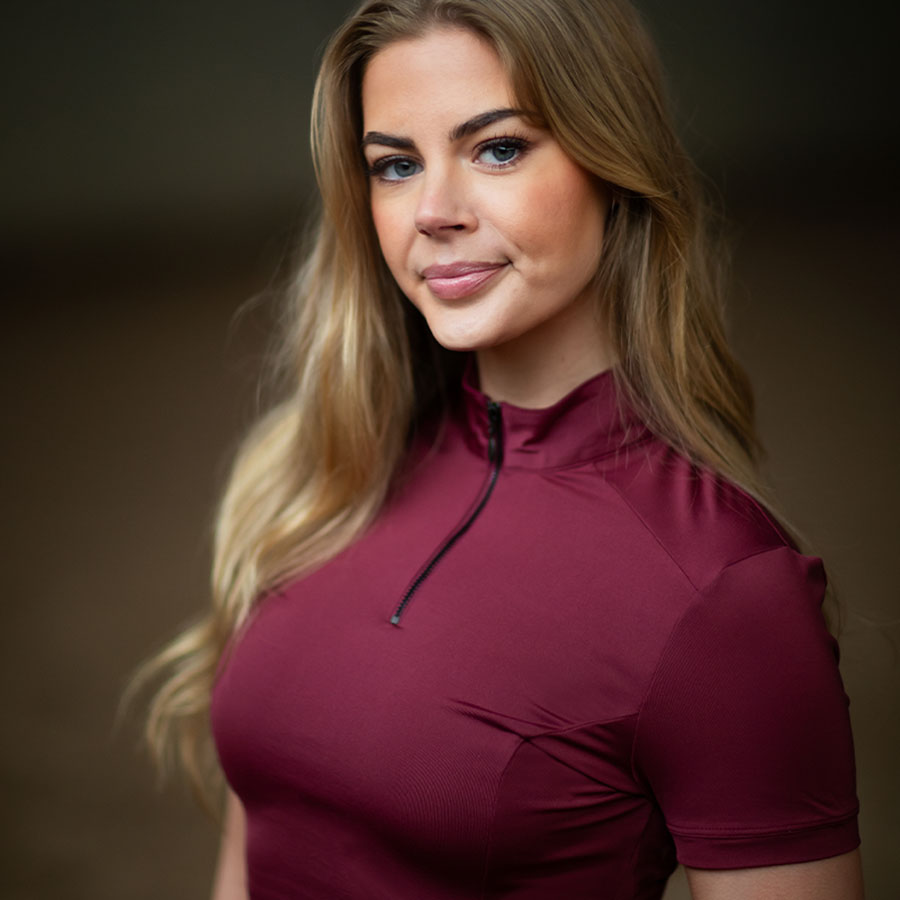 Ta treningowa koszulka jeździecka to idealny wybór dla jeźdźców, którzy szukają połączenia stylu i funkcjonalności. Stylowy, bordowy design z srebrnym zamkiem z przodu nadaje jej wyrazisty i sportowy charakter.