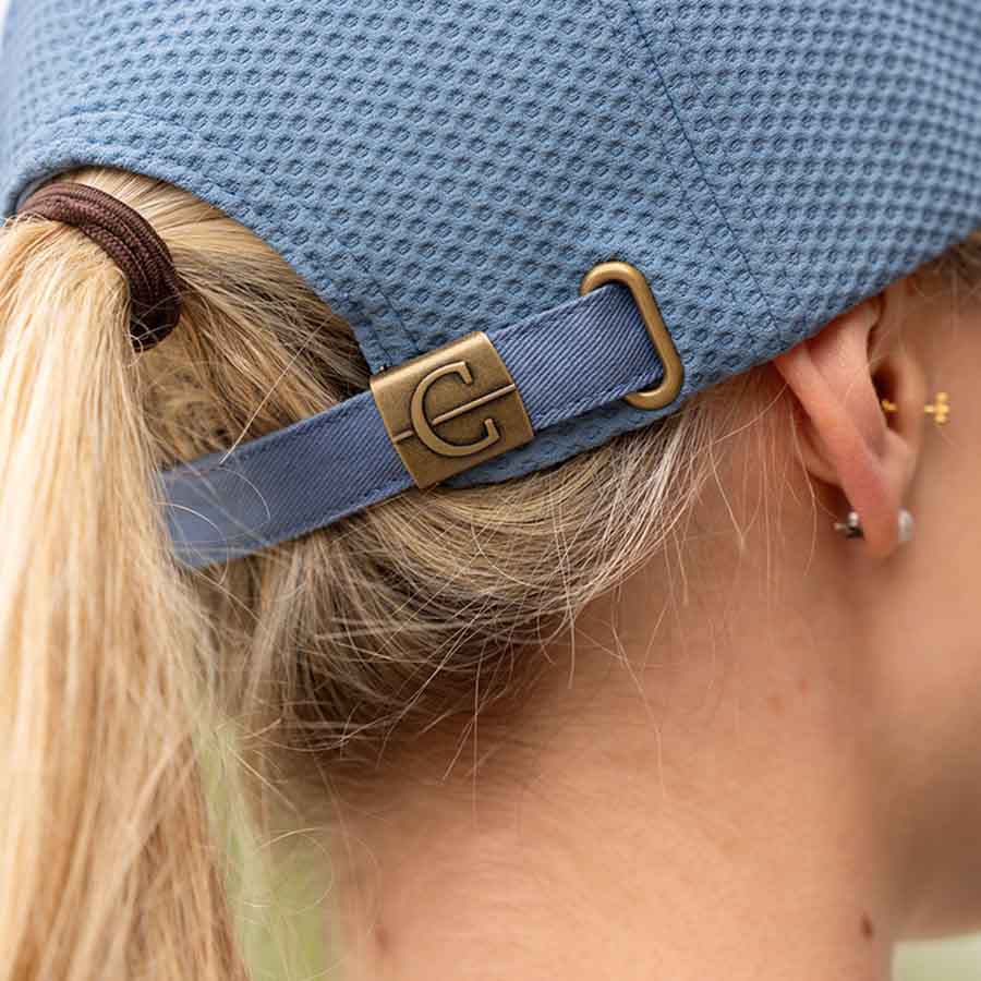 Niebieska, klasyczna czapka z daszkiem typu baseball wykonana z przewiewnej siateczki, która łączy styl i funkcjonalność – idealna zarówno do stajni, jak i na co dzień. Prosty design z eleganckim logo z przodu nadaje jej sportowy charakter, a materiał z siateczki wraz ze wzmocnionymi otworami wentylacyjnymi pomaga utrzymać głowę w chłodzie w cieplejsze dni.