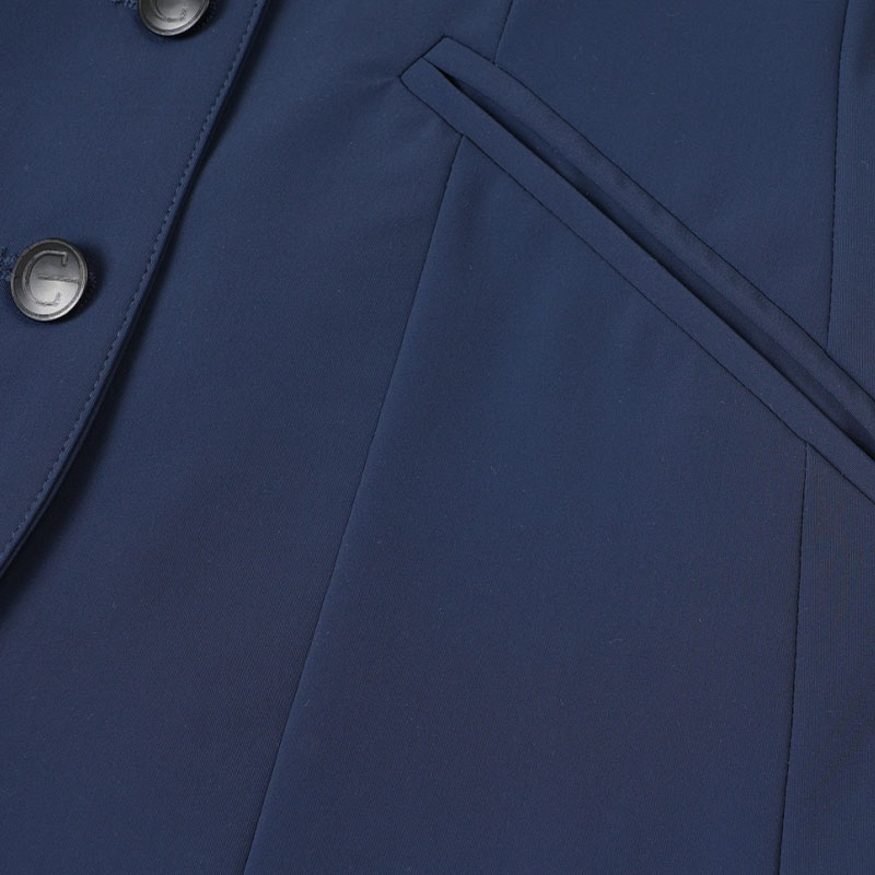Granatowy frak konkursowy Covalliero dla dzieci i juniorów łączy elegancki, klasyczny wygląd z funkcjonalnymi właściwościami materiału. Dzięki dopracowanemu krojowi i elastycznej tkaninie zapewnia pełną swobodę ruchów w siodle.