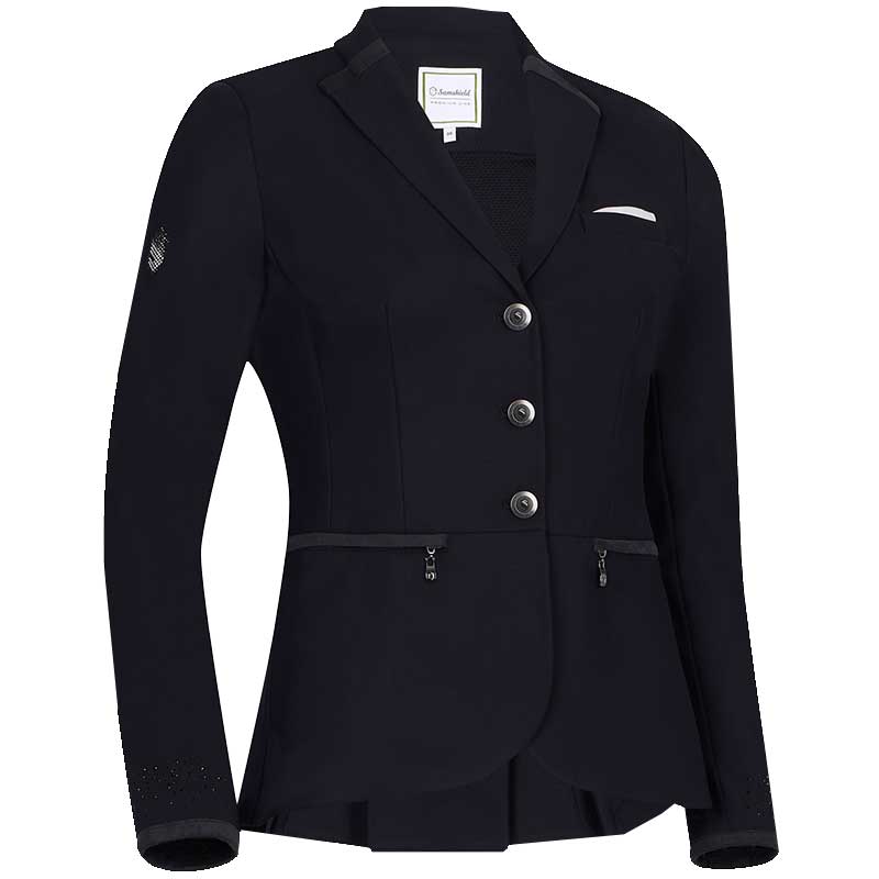• Samshield Victorine to techniczny frak konkursowy, który łączy najwyższy komfort z elegancją i nowoczesnymi rozwiązaniami dla jeźdźca. Dzięki dopracowanemu krojowi, niemal jak szytemu na miarę, oraz asymetrycznej konstrukcji (krótszy przód, dłuższy tył), frak doskonale układa się na sylwetce i zapewnia wyjątkowy wygląd w siodle.