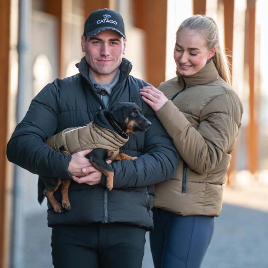 • Ta beżowa kurtka jeździecka posiada wysoki kołnierz oraz design, który łączy w sobie styl i funkcjonalność. Kurtka wypełniona jest grubą syntetyczną ociepliną, która zapewnia doskonałą izolację termiczną, co sprawia, że jest idealna na długie dni w stajni oraz chłodne przejażdżki. Wnętrze zostało elegancko zaprojektowane z logo Catago, a haftowane logo na klatce piersiowej dodaje wyrafinowanego akcentu.