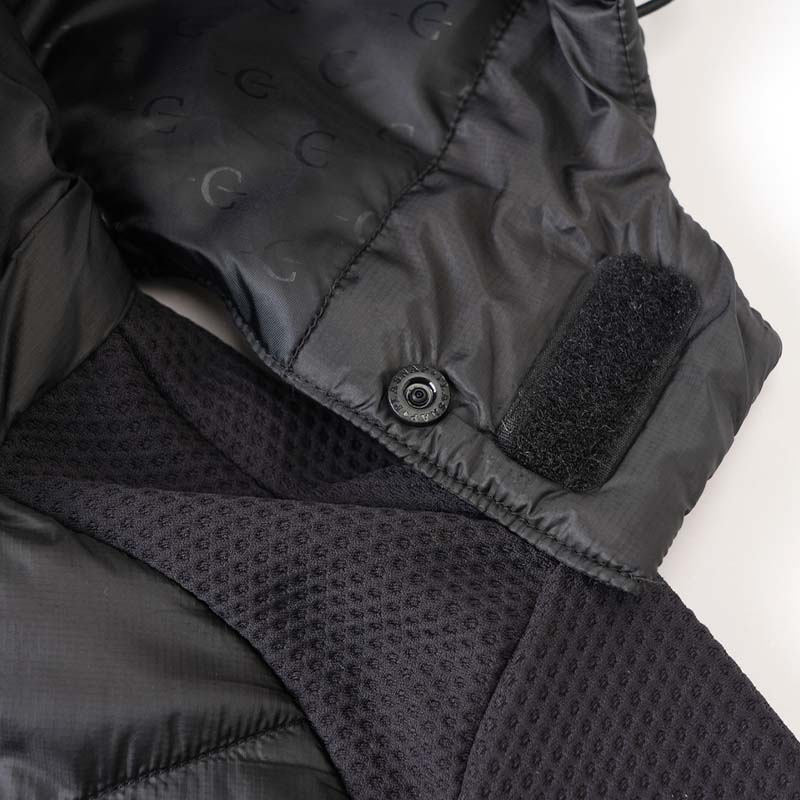 Materiały: Tkanina perforowana 85% Poliester, 15% Spandex, 100% Poliester. Materiał pikowany 100% Poliester (z recyklingu). Podszewka 100% Poliester. Wypełnienie 100% Poliester