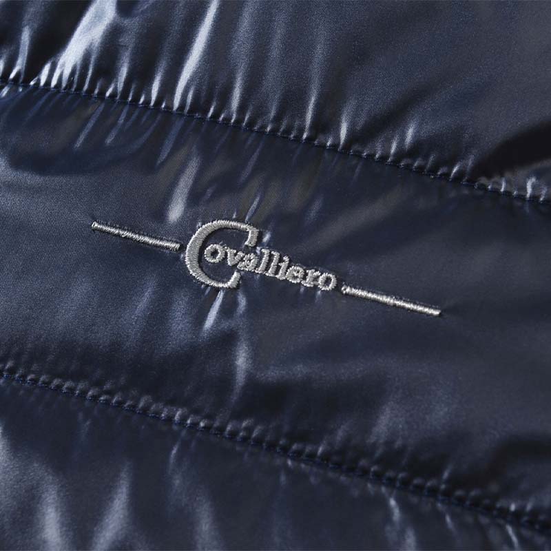 Kurtka męska pikowana z lekkim wypełnieniem i wodoodpornym materiałem zewnętrznym. Posiada kieszenie po obu stronach, które zamykają się na zamek błyskawiczny, oraz zamek błyskawiczny z dwoma suwakami z przodu, co ułatwia siedzenie w siodle.