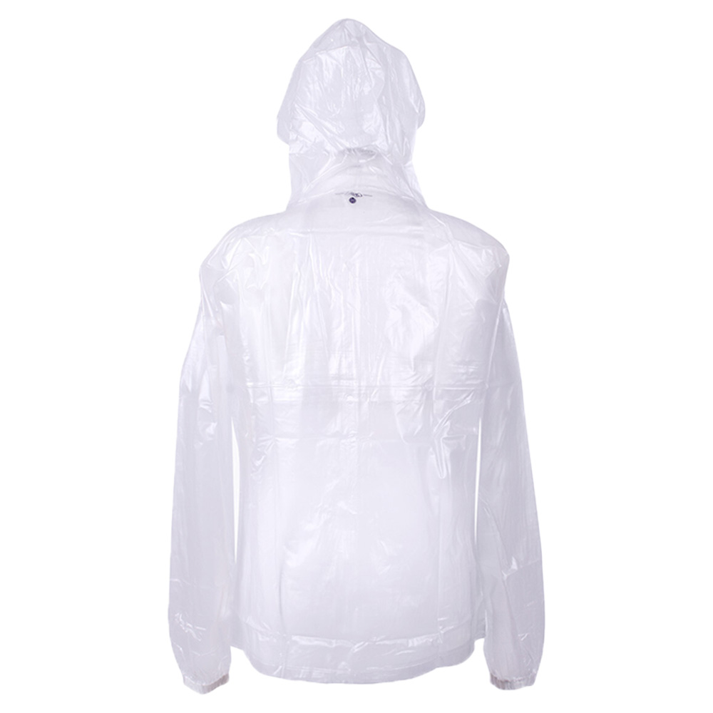 Przezroczysta kurtka przeciwdeszczowa (rozmiar dziecięcy) wykonana z materiału PVC to praktyczne rozwiązanie na deszczowe dni – zarówno podczas zawodów, jak i na co dzień.