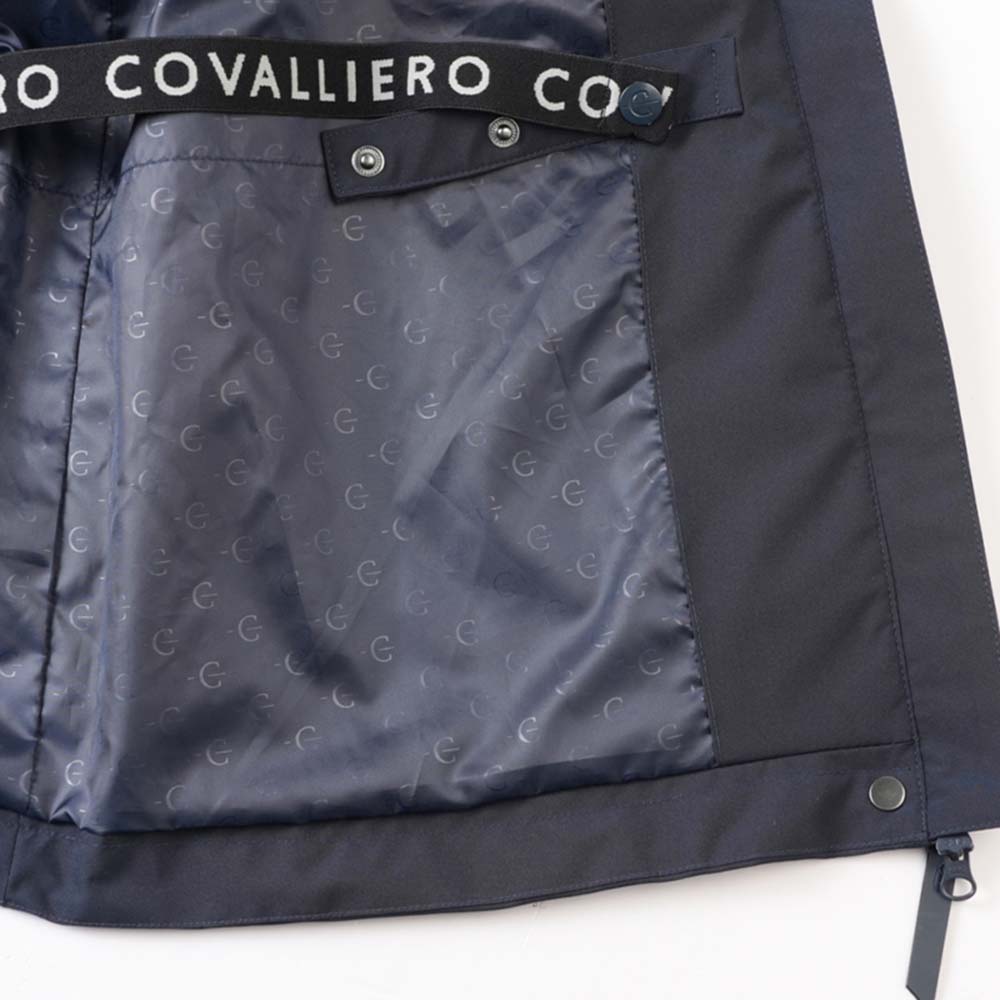 Płaszcz przeciwdeszczowy Covalliero w kolorze granatowym został zaprojektowany, aby zapewnić suchość i komfort w każdych warunkach pogodowych. Dzięki wodoodporności odpowiadającej słupowi wody o wysokości 10 000 mm i klejonym szwom, wytrzymuje intensywne opady deszczu, a wysoka oddychalność 3 000 g/m²/24 h zapewnia przyjemny klimat ciała nawet podczas ruchu. Odpinany kaptur można przymocować za pomocą guzika do jazdy konnej, a sznurek umożliwia dopasowanie. Dla dodatkowego komfortu płaszcz posiada zintegrowaną wentylację tylną z logo, która poprawia cyrkulację powietrza.