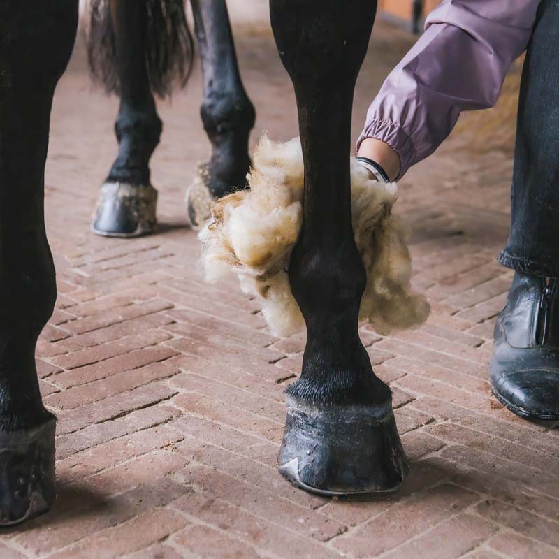 • Grooming Deluxe firmy Kentucky wprowadza nowy standard w pielęgnacji koni dzięki swojej terapeutycznej wełnie o gramaturze 150g. Ta 100% prawdziwa wełna owcza jest idealna dla koni z problemami skórnymi, takimi jak gruda oraz innymi alergiami skórnymi. Wełna jest bogata w lanolinę, co zapewnia naturalne nawilżenie i pomaga usunąć płyn, jednocześnie redukując obrzęki. Przyspiesza również gojenie problemów skórnych oraz wspiera zdrowe ścięgna i stawy. Każde opakowanie zawiera 150g wełny, sprzedawanej w jej naturalnym stanie w celu zachowania korzystnych właściwości. Wełna jest luźna w worku, co czyni ją bardzo wszechstronną i umożliwia jej całkowite wykorzystanie zgodnie z własnymi potrzebami. Dla celów higienicznych zalecamy używanie wełny tylko raz.