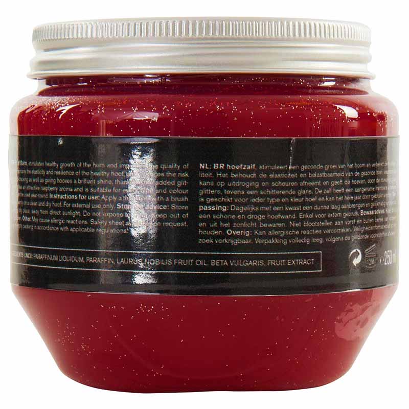 Balsam na kopyta ma wspaniały zapach maliny, odpowiedni do wszystkich typów kopyt i może być stosowany przez cały rok.