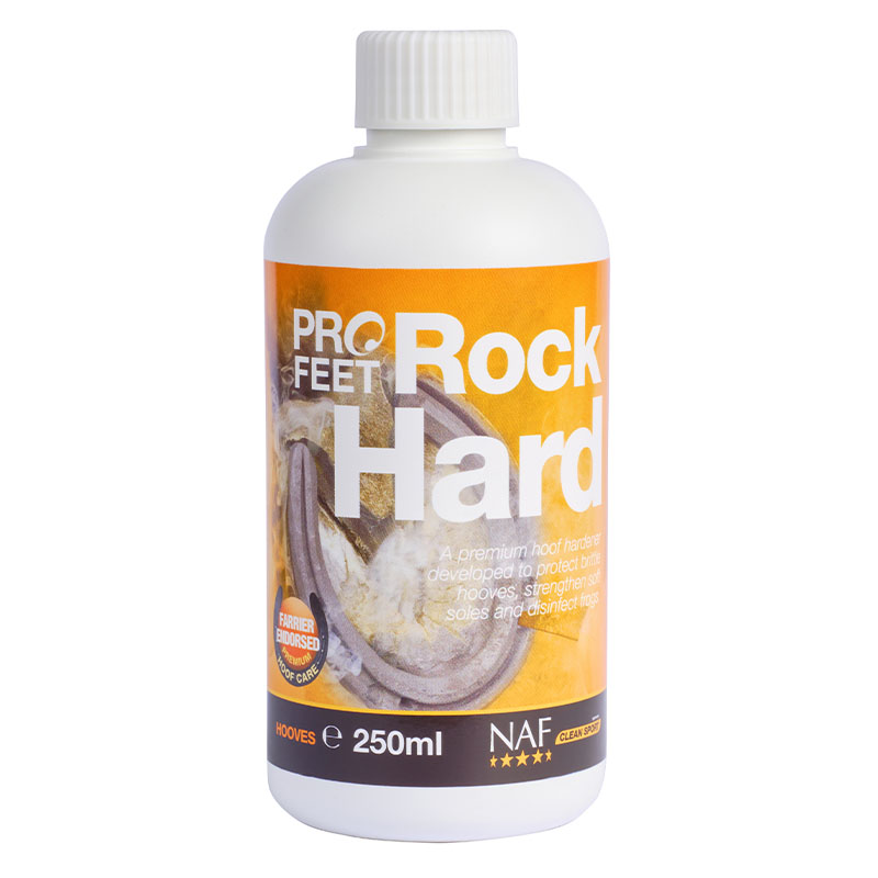 ProFeet Rock Hard to preparat wzmacniający kopyta, przeznaczony szczególnie dla koni z miękką podeszwą, gniciem strzałki lub problemami grzybiczymi w obrębie kopyta. Sprawdza się również u koni, których kopyta są narażone na większe zużycie.