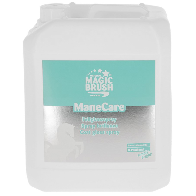 • Magic Brush Coat Shine to skuteczny produkt stworzony, aby nadać sierści Twojego konia piękny blask. Zawiera D-Panthenol, który działa jako środek nawilżający, chroniąc skórę i sierść przed wysychaniem. D-Panthenol łagodzi także uszkodzoną skórę, co czyni go idealnym dla koni z wrażliwą skórą. Produkt zawiera specjalny środek pielęgnacyjny, który poprawia zarówno mokre, jak i suche rozczesywanie włosów, tym samym zapobiegając łamliwości i matowieniu podczas szczotkowania.