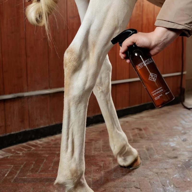 Ciesz się czystą i zadbaną sierścią bez konieczności mycia – idealnie, aby utrzymać konia w doskonałej kondycji przez cały rok. Green Spot & Dust Remover Almond to niezbędny spray pielęgnacyjny, który skutecznie czyści i pielęgnuje sierść konia bez użycia wody. Jest szczególnie idealny jesienią i zimą, ponieważ ogranicza potrzebę częstego mycia, jednocześnie utrzymując sierść w czystości i dobrej kondycji. Spray skutecznie usuwa uporczywe plamy, takie jak błoto, trawa, obornik i mocz, dzięki czemu doskonale sprawdza się do szybkiego czyszczenia na co dzień lub przed zawodami. Niepieniąca się, bezbarwna formuła nie pozostawia żadnych śladów, a wbudowane składniki pielęgnujące zapewniają miękkie i lśniące wykończenie.