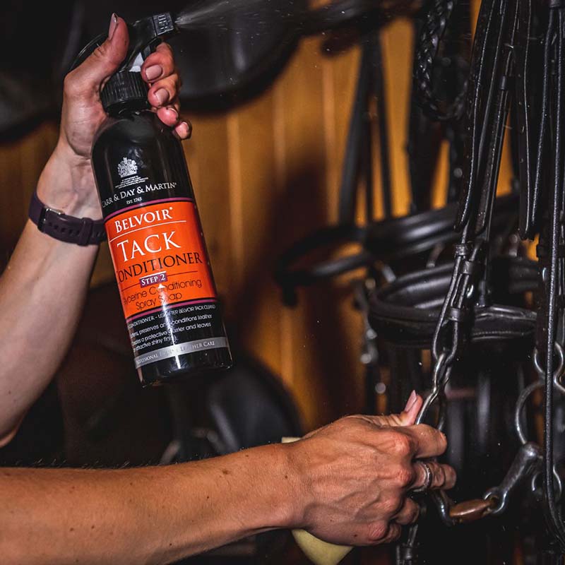 Belvoir Leather Care Duo to praktyczny zestaw do pielęgnacji skórzanego sprzętu jeździeckiego, który pomaga utrzymać siodła, ogłowia i inne elementy wyposażenia w doskonałej kondycji. Dzięki temu zestawowi nie musisz już szorować skóry przed nałożeniem preparatu pielęgnacyjnego.