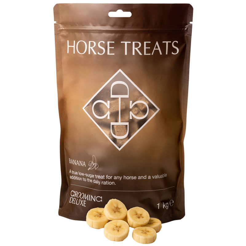 Przysmaki dla koni od Grooming Deluxe to doskonała nagroda dla Twojego konia. Te pyszne przysmaki mają zachwycający smak bananowy, który większość koni uwielbia. Przy niskiej zawartości cukru są zdrową opcją, aby nagrodzić swojego przyjaciela po dobrym treningu lub jako małą niespodziankę. Opakowanie 1 kg sprawia, że łatwo mieć je pod ręką, gdy ich potrzebujesz. Aby zachować smak i jakość, zaleca się przechowywanie przysmaków w chłodnym, suchym miejscu, z dala od bezpośredniego światła słonecznego.