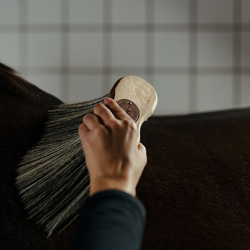 Ta szczotka jest idealna do codziennego użytku i pomaga utrzymać twojego konia w doskonałej formie do treningu lub zawodów.