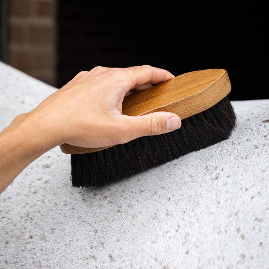 Szczotka LeMieux Artisan Combi Body Brush łączy naturalne końskie włosie z syntetycznym – skutecznie usuwa kurz i brud, a jednocześnie jest odpowiednia nawet dla bardziej wrażliwych koni. Ergonomiczny drewniany uchwyt wygodnie leży w dłoni. Złote logo LeMieux na miękkim skórzanym pasku nadaje całości elegancki i stylowy wygląd.