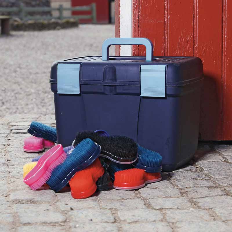 Fantastyczny wielofunkcyjny szczotka w kolorze granatowym od Horse Guard to uniwersalne narzędzie, które nadaje się zarówno do sierści, jak i kopyt - ulubieniec do usuwania zaschniętego błota! Oprócz codziennego czesania, można go również używać podczas linienia oraz do czyszczenia podkładek i koców dla koni. Dzięki swojej specjalnej strukturze i designowi, bardzo dobrze czyści, zapewniając jednocześnie efekt masażu dla konia. Tył można również wygodnie wykorzystać jako skrobak do potu!