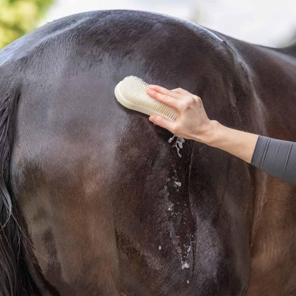 Magic Brush Sustainable to praktyczny i ekologiczny pędzel wykonany z zrównoważonego plastiku, z co najmniej 50% pochodzącym z słomy i cukru. Nowa wersja średnio-twarda zapewnia lekkie masaż i trwały blask sierści twojego konia. Nadaje się do pielęgnacji sierści, nóg i kopyt, co czyni go wszechstronnym narzędziem w twoim zestawie do pielęgnacji. Dodatkowo jest higieniczny, ponieważ szczotki można czyścić w pralce. Ciekawą cechą jest to, że tył szczotki może być używany jako skrobak do potu, co czyni go produktem 2-w-1.