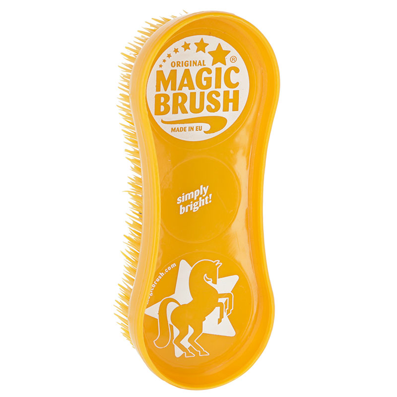 Zestaw trzech klasycznych MagicBrushów, które są uniwersalnymi szczotkami do sierści i kopyt, odpowiednimi do stosowania na mokrych i suchych powierzchniach. Oprócz codziennego szczotkowania, nadają się również do używania podczas linienia oraz do czyszczenia podkładów siodłowych i koców dla koni. Dzięki swojej specjalnej strukturze i designowi, czyszczą wyjątkowo dobrze, zapewniając jednocześnie efekt masażu dla konia. Tył można używać jako skrobaka do potu. Numer artykułu: