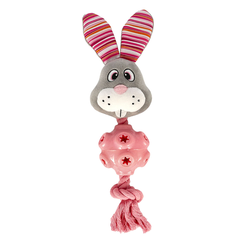 Ten uroczy królik łączy w sobie to, co najlepsze z dwóch światów, oferując zarówno sznur, jak i trwałą gumową piłkę do żucia, a także miękką pluszową głowę z piszczałką. Idealny dla tych, którzy nie są pewni, jaki typ zabawki preferuje ich pies lub pies ich przyjaciela, lub jeśli po prostu szukasz czegoś, co na pewno przypadnie do gustu wszystkim psom w stajni!