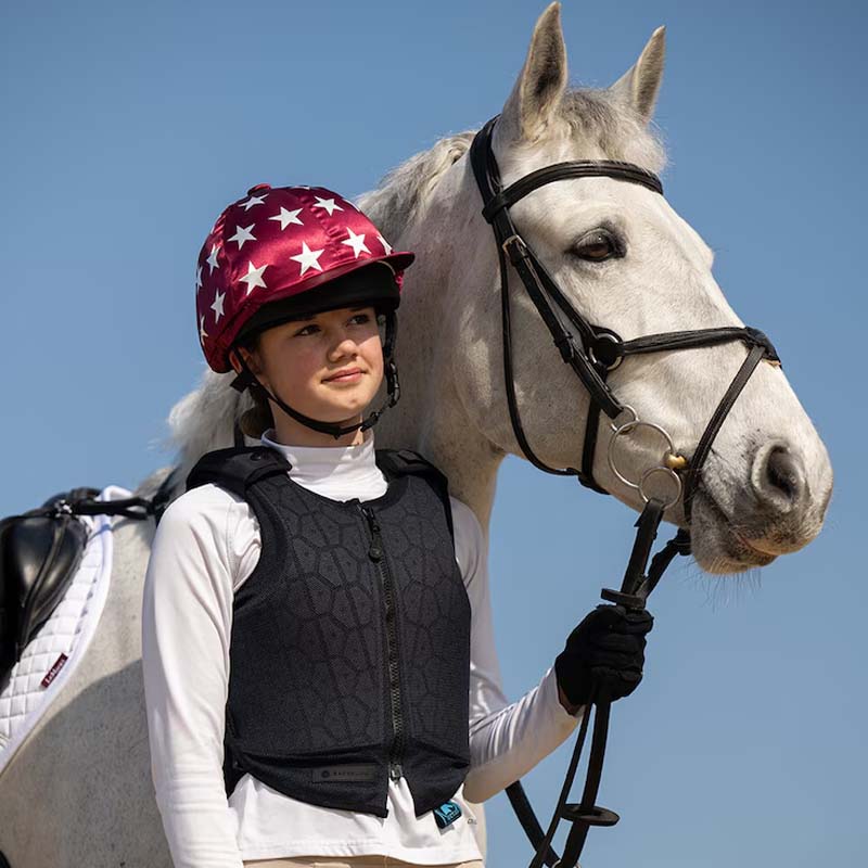 Kamizelka ochronna Racesafe HX3 w kolorze czarnym charakteryzuje się innowacyjnym sześciokątnym wzorem, zapewniającym zaawansowaną oddychalność i wielokierunkową elastyczność. Kamizelka jest certyfikowana zgodnie ze standardem BETA 2018 (poziom 3) oraz EN13158:2018, co gwarantuje najwyższy poziom ochrony. Idealna dla jeźdźców poszukujących zarówno bezpieczeństwa, jak i komfortu podczas jazdy.