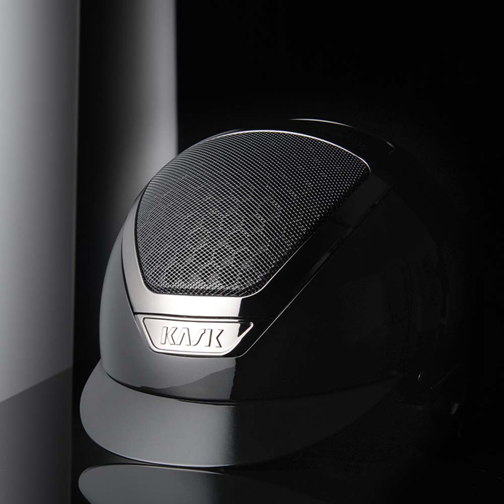 KASK Dogma Pure Shine w kolorze Anthracite to wysokiej jakości kask jeździecki ze standardowym daszkiem, który łączy bezpieczeństwo, komfort i elegancki, nowoczesny design. Jego powierzchnia na wysoki połysk została uzupełniona błyszczącymi chromowanymi detalami w tonacji dopasowanej do skorupy, co nadaje mu stylowy wygląd.