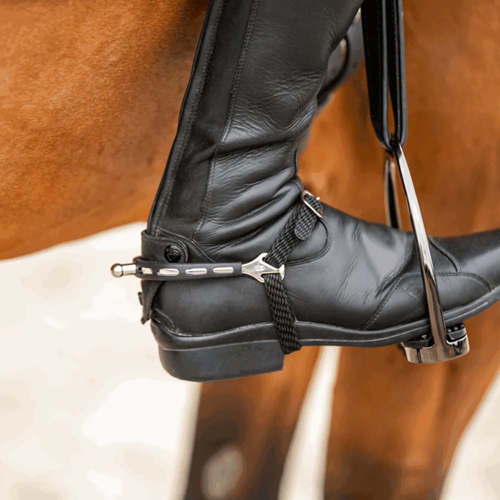Mocowanie wyposażone jest w system Balkenhol – oczko ostrogi z odchyloną na zewnątrz częścią środkową, dzięki czemu pasek ostrogi przebiega blisko buta bez ucisku ani przesuwania się. Taka konstrukcja zapewnia stabilne i bezpieczne dopasowanie.